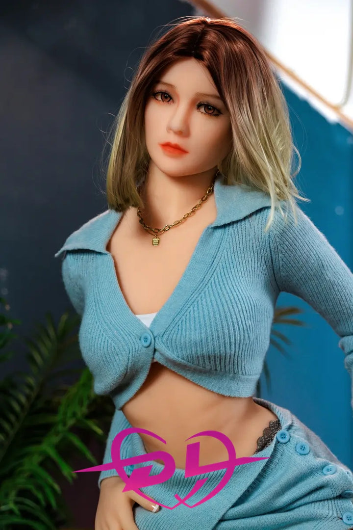 She has a beautiful face, a high nose and brown eyes, and she looks at you seductively. Her shoulder-length blond hair adds to her charm. With a slender waist and just the right waist-to-hip ratio, she is an adult doll that is very suitable for companionship from every aspect. Her skin is naturally white and looks almost like a real person.Her small boobs add a touch of innocence, making every moment with this love doll unforgettable.