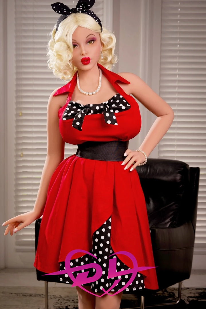 Jessica has a full K-cup chest, a slender waist, and a very proud figure. Wearing a red skirt, she highlights her sexy figure and leaves a strong impression. With her light golden curly hair and plump lips, she is a typical Western-style beauty doll. Made of upgraded high-quality STPE material, it looks very real skin, giving you a more realistic experience.